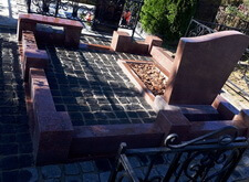 Облицевали бетон полированным гранитом, на территорию участка уложили брусчатку, предварительно приподняв памятник.